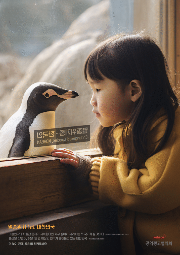 | 2023 (발표 2024) | 대한민국 공익광고제 (주최: 한국방송광고진흥공사 — 코바코) | 대상 수상 → 수상작이 AI 제작 포스터였음 밝혀져 논란 | 대상작 ‘멸종위기 1급 대한민국’ 포스터가 생성형 AI(예: 텍스트 → 이미지 AI)로 제작된 것으로 뒤늦게 알려져 사회적 논란이 일었음. 주최 측은 “창의성, 기획력 등 평가 기준에 따라 수상했다”는 입장 |