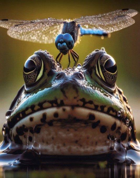 개구리 위에 잠자리가 앉아 있는 고퀄리티 사진이 743점 중 1등을 수상했습니다.